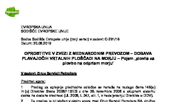 Članek nima posebnosti! Sklepni predlogi - C-291-18 (Grup Servicii Petroliere).doc