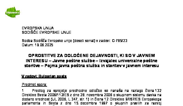 OPROSTITEV V ZVEZI Z DAJANJEM KREDITOV – OPROSTITEV V ZVEZI S FINANČNIMI TRANSAKCIJAMI – IZTERJAVA DOLGOV – Faktoring s prodajo terjatev – Faktoring z zastavno pravico (C-332/24) Kosmiro 23.10.2025 28.10.2025