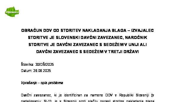 SLOVENSKI DAVČNI ZAVEZANEC OPRAVI STORITEV SEČNJE DREVES (GOZDA) NA OZEMLJU SLOVENIJE HRVAŠKEMU DAVČNEMU ZAVEZANCU – Določitev kraja opravljanja storitev skladno z določili ZDDV-1 25.11.2025 25.11.2025