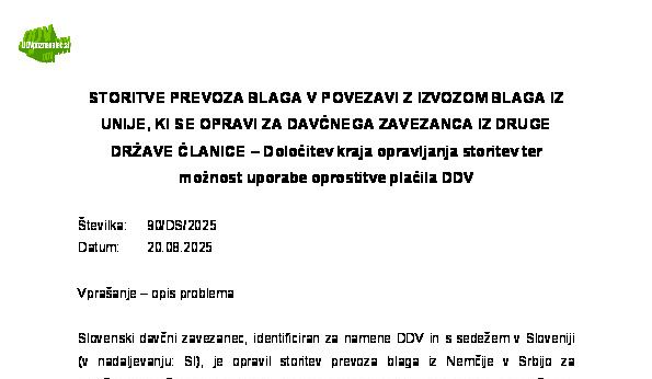 SLOVENSKI DAVČNI ZAVEZANEC OPRAVI STORITEV SEČNJE DREVES (GOZDA) NA OZEMLJU SLOVENIJE HRVAŠKEMU DAVČNEMU ZAVEZANCU – Določitev kraja opravljanja storitev skladno z določili ZDDV-1 25.11.2025 25.11.2025