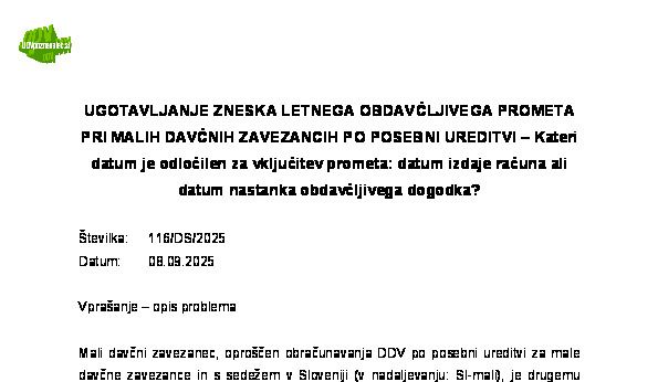 PRIDOBITEV IDENTIFIKACIJSKE ŠTEVILKE ZA DDV PRI MALEM DAVČNEM ZAVEZANCU – NAKUPI RABLJENEGA BLAGA OD OBDAVČLJIVIH PREPRODAJALCEV IZ DRUGIH DRŽAV ČLANIC EU – Ali preseganje nakupov v vrednosti 10.000 EUR pomeni obveznost za identifikacijo za DDV? 27.11.2025 27.11.2025