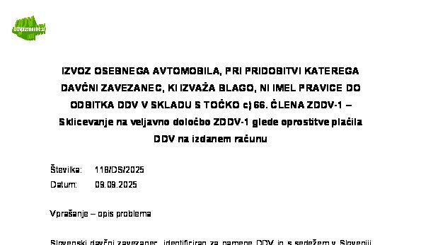 PRIDOBITEV IDENTIFIKACIJSKE ŠTEVILKE ZA DDV PRI MALEM DAVČNEM ZAVEZANCU – NAKUPI RABLJENEGA BLAGA OD OBDAVČLJIVIH PREPRODAJALCEV IZ DRUGIH DRŽAV ČLANIC EU – Ali preseganje nakupov v vrednosti 10.000 EUR pomeni obveznost za identifikacijo za DDV? 27.11.2025 27.11.2025