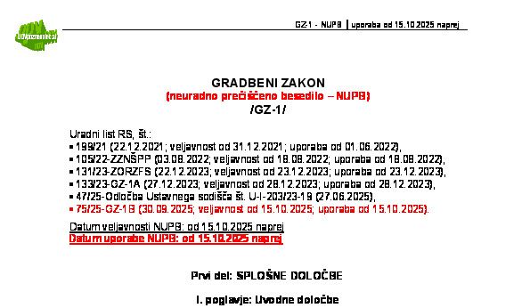 05.4 GRADBENI ZAKON (GZ-1 - neuradno prečiščeno besedilo) 28.12.2023 14.10.2025 [!] 05.01.2024