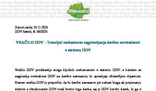 PRAVICA DO ODBITKA DDV V POVEZAVI Z NAKUPOM, GRADNJO ALI PRENOVO NEPREMIČNIN – Dokazovanje uporabe nepremičnine za namene izvajanja dejavnosti s pravico do odbitka DDV 18.11.2025 18.11.2025