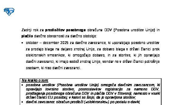 Predložitev posebnega obračuna DDV in plačevanje davčne obveznosti (posebna ureditev Unije) 17.12.2025