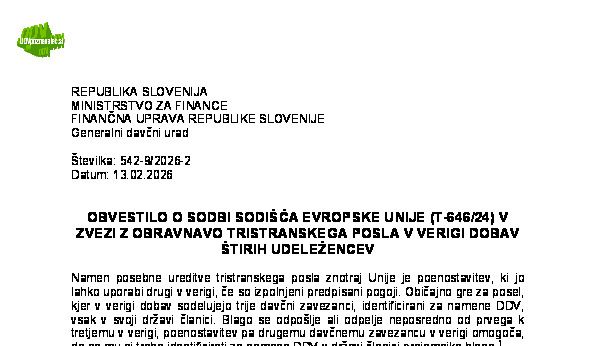 POGOJI IN NAČIN OPROSTITVE DAVKOV ZA DIPLOMATSKA PREDSTAVNIŠTVA, KONZULATE, AGENCIJE IN ORGANE EVROPSKE UNIJE TER MEDNARODNE ORGANIZACIJE V SKLADU Z MEDNARODNIMI POGODBAMI, KI ZAVEZUJEJO REPUBLIKO SLOVENIJO (podrobnejši opis, 2. izdaja) 09.02.2026 09.02.2026