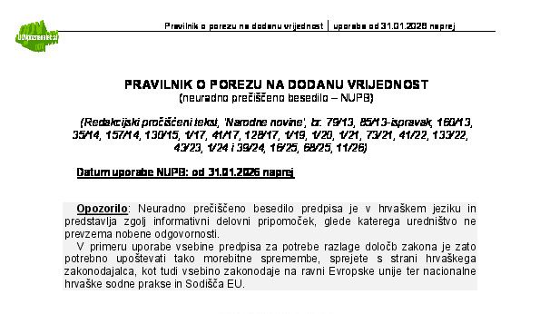 HRVAŠKA - Zakon o porezu na dodanu vrijednost (ZPDV) 01.01.2026 23.03.2026
