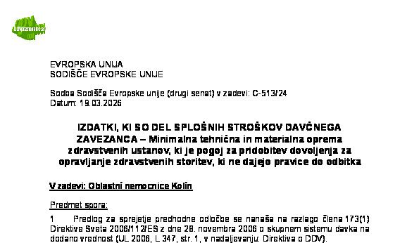 IZKLJUČITEV PRAVICE DO ODBITKA DDV – PRIDOBITEV VSTOPNIC ZA ŠPORTNE PRIREDITVE IN REKREACIJSKE STORITVE – Začetek veljavnosti pravice do odbitka DDV na dan pristopa Kraljevine Španije k Evropski gospodarski skupnosti (C-515/24) Randstad España 12.03.2026 19.03.2026