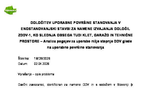 STOPNJA DDV PRI STORITVAH OBNOVE IN POPRAVIL STANOVANJ – Možni prihranki iz naslova DDV pri investitorju, ki nima pravice do (celotnega ali delnega) odbitka DDV 26.03.2026 26.03.2026