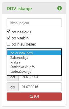 Za brskanje po dokumentih DDV spletne podatkovne baze DDVpoznavalec.si vam je vedno na voljo tudi iskalec – DDV iskanje – ki vam s pomočjo: