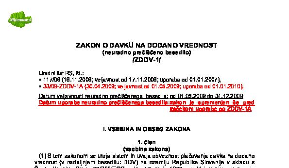 | ZAKON O DAVKU NA DODANO VREDNOST (ZDDV-1 - neuradno prečiščeno besedilo) | 01.01.2025 | [!] | 10.12.2024 | |