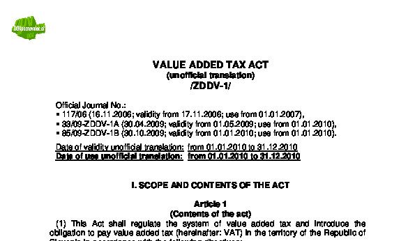 ZAKON O DAVKU NA DODANO VREDNOST (ZDDV-1 - neuradno prečiščeno besedilo) 08.11.2022 17.04.2023 [!] 13.12.2022