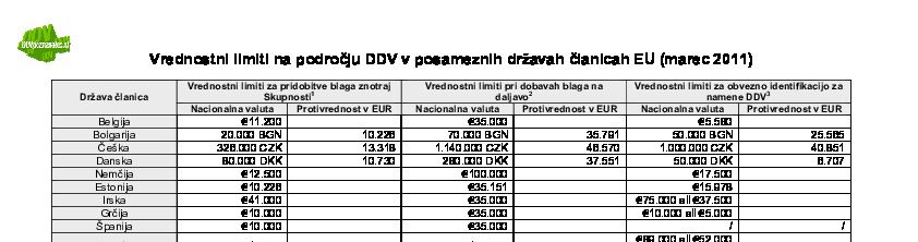 Vrednostni limiti za registracijo na področju DDV v posameznih državah članicah EU in državah izven Unije ter pragi za poročanje Intrastat (na dan 01.01.2025) 16.01.2025
