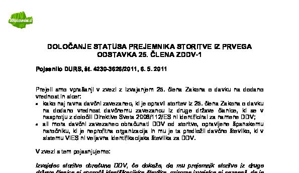 Navedeno pojasnilo se nanaša na izvajanje Izvedbene uredbe Sveta (EU) št. 282/2011 z dne 15.03.2011, katera se skladno z drugim odstavkom 65. člena uporablja od 01.07.2011 naprej (gre za neposredno uporabo - tudi v Sloveniji). Članek nima prilog!