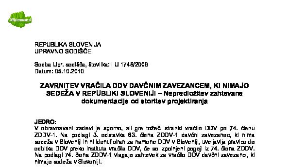 IZPOLNJEVANJE POGOJEV ZA DOBAVO BLAGA ZNOTRAJ UNIJE, OPROŠČENO PLAČILA DDV NA PODLAGI 46. ČLENA ZDDV-1 – Nepopolne CMR listine (I U 1704/2021-38) 27.11.2024 15.10.2025