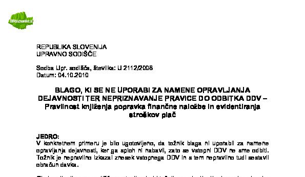 IZPOLNJEVANJE POGOJEV ZA DOBAVO BLAGA ZNOTRAJ UNIJE, OPROŠČENO PLAČILA DDV NA PODLAGI 46. ČLENA ZDDV-1 – Nepopolne CMR listine (I U 1704/2021-38) 27.11.2024 15.10.2025