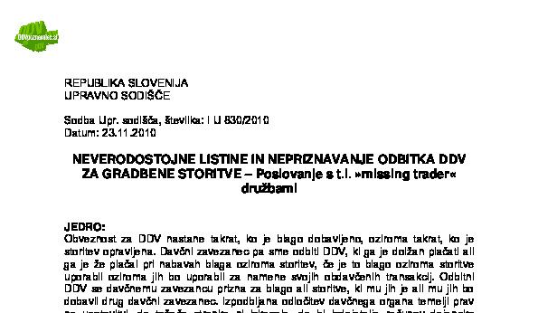 IZPOLNJEVANJE POGOJEV ZA DOBAVO BLAGA ZNOTRAJ UNIJE, OPROŠČENO PLAČILA DDV NA PODLAGI 46. ČLENA ZDDV-1 – Nepopolne CMR listine (I U 1704/2021-38) 27.11.2024 15.10.2025