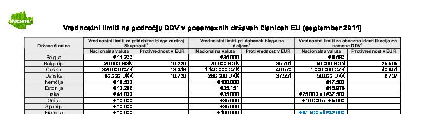 Vrednostni limiti za registracijo na področju DDV v posameznih državah članicah EU in državah izven Unije ter pragi za poročanje Intrastat (na dan 01.01.2025) 16.01.2025
