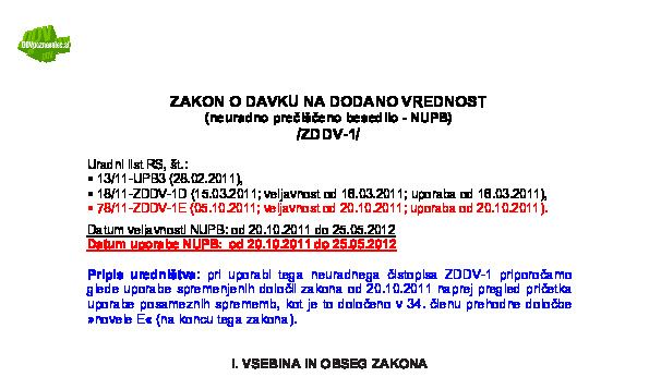 ZAKON O DAVKU NA DODANO VREDNOST (ZDDV-1 - neuradno prečiščeno besedilo) 18.04.2023 05.12.2023 [!] 05.04.2023