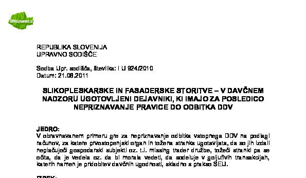 IZPOLNJEVANJE POGOJEV ZA DOBAVO BLAGA ZNOTRAJ UNIJE, OPROŠČENO PLAČILA DDV NA PODLAGI 46. ČLENA ZDDV-1 – Nepopolne CMR listine (I U 1704/2021-38) 27.11.2024 15.10.2025