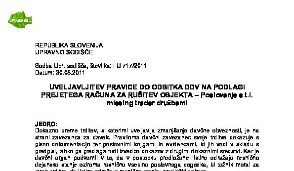 IZPOLNJEVANJE POGOJEV ZA DOBAVO BLAGA ZNOTRAJ UNIJE, OPROŠČENO PLAČILA DDV NA PODLAGI 46. ČLENA ZDDV-1 – Nepopolne CMR listine (I U 1704/2021-38) 27.11.2024 15.10.2025