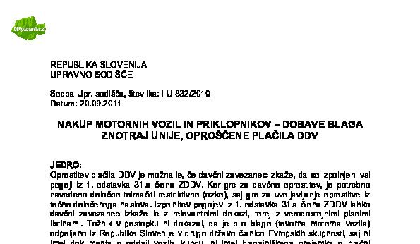 IZPOLNJEVANJE POGOJEV ZA DOBAVO BLAGA ZNOTRAJ UNIJE, OPROŠČENO PLAČILA DDV NA PODLAGI 46. ČLENA ZDDV-1 – Nepopolne CMR listine (I U 1704/2021-38) 27.11.2024 15.10.2025