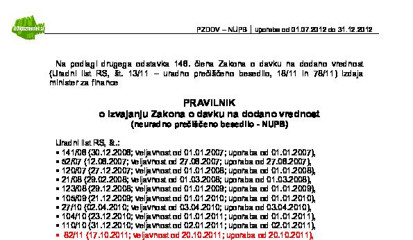 Posebnost glede uporabe - glej 48. člen prehodne in končno določbo Pravilnika o spremembah in dopolnitvah PZDDV (Uradni list RS, št. 82/11):