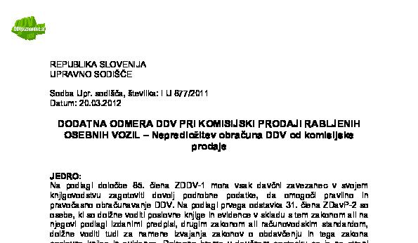 PRIDOBITEV VOZILA – PREDPLAČILO ZA PRIHODNJO PRODAJO VOZILA – Pridobitev novega ali rabljenega vozila (I U 1443/2022-29) 23.10.2024 19.03.2025
