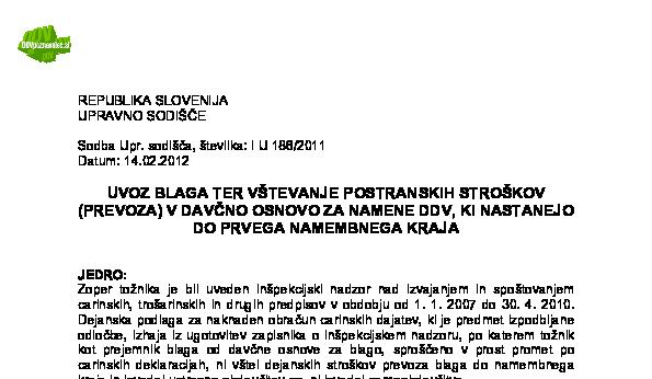 IZPOLNJEVANJE POGOJEV ZA DOBAVO BLAGA ZNOTRAJ UNIJE, OPROŠČENO PLAČILA DDV NA PODLAGI 46. ČLENA ZDDV-1 – Nepopolne CMR listine (I U 1704/2021-38) 27.11.2024 15.10.2025