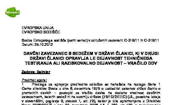 VRAČILO DDV DAVČNIM ZAVEZANCEM, KI NIMAJO SEDEŽA V DRŽAVI ČLANICI VRAČILA – GLAVNA IN POMOŽNA STORITEV – UMETNA DELITEV ENOTNE STORITVE – Neobstoj premestitve predmeta dobave (C-234/24) Brose Prievidza 23.10.2025 24.10.2025