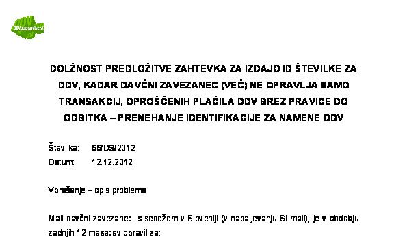 PRIDOBITEV IDENTIFIKACIJSKE ŠTEVILKE ZA DDV PRI MALEM DAVČNEM ZAVEZANCU – NAKUPI RABLJENEGA BLAGA OD OBDAVČLJIVIH PREPRODAJALCEV IZ DRUGIH DRŽAV ČLANIC EU – Ali preseganje nakupov v vrednosti 10.000 EUR pomeni obveznost za identifikacijo za DDV? 27.11.2025 27.11.2025