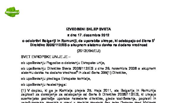IZVEDBENI SKLEP SVETA (EU) 2024/2884 z dne 5. novembra 2024 o spremembi Izvedbenega sklepa (EU) 2018/1994 o dovoljenju Hrvaški, da uvede posebni ukrep, ki odstopa od točke (a) člena 26(1) ter členov 168 in 168a Direktive 2006/112/ES o skupnem sistemu DDV 14.11.2024