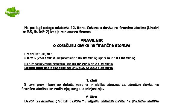 13.a Pravilnik o izvajanju Zakona o davčnem potrjevanju računov (PZDavPR - neuradno prečiščeno besedilo) 01.01.2026 13.03.2025