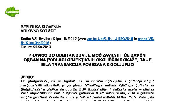 PRAVICA DO ODBITKA DDV – Dokazovanje obstoja goljufije na področju DDV s strani davčnega organa (X Ips 73/2021) 08.03.2023 13.06.2023
