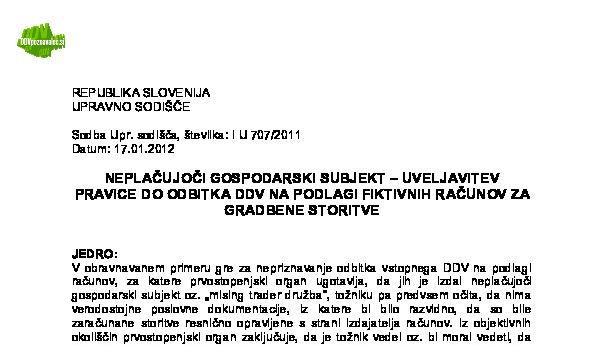 IZPOLNJEVANJE POGOJEV ZA DOBAVO BLAGA ZNOTRAJ UNIJE, OPROŠČENO PLAČILA DDV NA PODLAGI 46. ČLENA ZDDV-1 – Nepopolne CMR listine (I U 1704/2021-38) 27.11.2024 15.10.2025