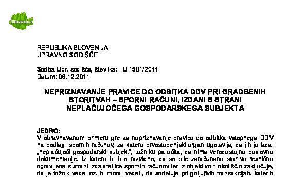 IZPOLNJEVANJE POGOJEV ZA DOBAVO BLAGA ZNOTRAJ UNIJE, OPROŠČENO PLAČILA DDV NA PODLAGI 46. ČLENA ZDDV-1 – Nepopolne CMR listine (I U 1704/2021-38) 27.11.2024 15.10.2025