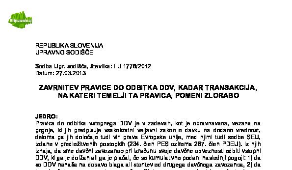 PREPRODAJA TELEFONOV, TABLIC IN OVITKOV – Zloraba sistema DDV – Pravica do odbitka DDV (I U 1312/2021-13) 06.06.2024 17.04.2025