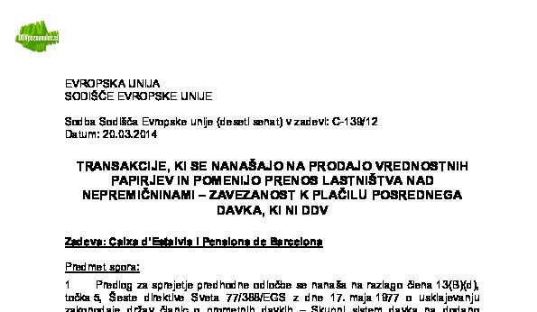 OPROSTITEV V ZVEZI Z DAJANJEM KREDITOV – OPROSTITEV V ZVEZI S FINANČNIMI TRANSAKCIJAMI – IZTERJAVA DOLGOV – Faktoring s prodajo terjatev – Faktoring z zastavno pravico (C-232/24) Kosmiro 23.10.2025 28.10.2025