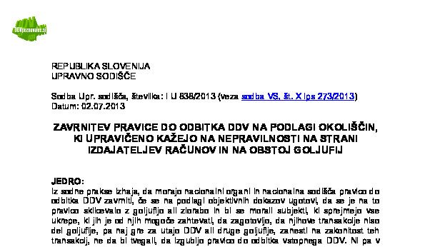 IZPOLNJEVANJE POGOJEV ZA DOBAVO BLAGA ZNOTRAJ UNIJE, OPROŠČENO PLAČILA DDV NA PODLAGI 46. ČLENA ZDDV-1 – Nepopolne CMR listine (I U 1704/2021-38) 27.11.2024 15.10.2025