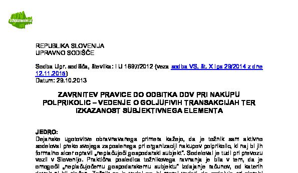 IZPOLNJEVANJE POGOJEV ZA DOBAVO BLAGA ZNOTRAJ UNIJE, OPROŠČENO PLAČILA DDV NA PODLAGI 46. ČLENA ZDDV-1 – Nepopolne CMR listine (I U 1704/2021-38) 27.11.2024 15.10.2025