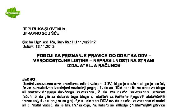IZPOLNJEVANJE POGOJEV ZA DOBAVO BLAGA ZNOTRAJ UNIJE, OPROŠČENO PLAČILA DDV NA PODLAGI 46. ČLENA ZDDV-1 – Nepopolne CMR listine (I U 1704/2021-38) 27.11.2024 15.10.2025