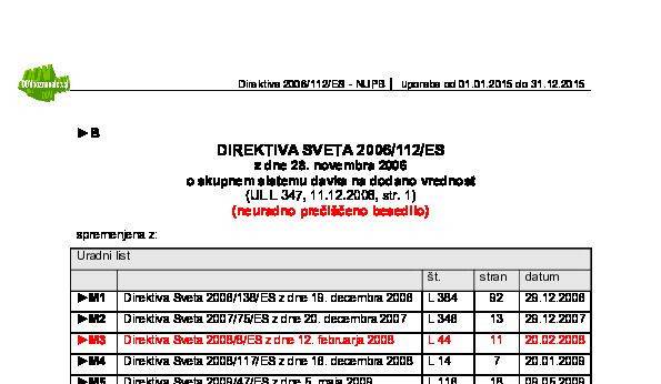 DIREKTIVA SVETA 2006/112/ES z dne 28.11.2006 o skupnem sistemu DDV (neuradno prečiščeno besedilo - NUPB) 14.04.2025 26.06.2025