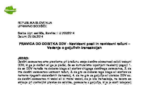 IZPOLNJEVANJE POGOJEV ZA DOBAVO BLAGA ZNOTRAJ UNIJE, OPROŠČENO PLAČILA DDV NA PODLAGI 46. ČLENA ZDDV-1 – Nepopolne CMR listine (I U 1704/2021-38) 27.11.2024 15.10.2025