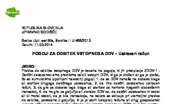 IZPOLNJEVANJE POGOJEV ZA DOBAVO BLAGA ZNOTRAJ UNIJE, OPROŠČENO PLAČILA DDV NA PODLAGI 46. ČLENA ZDDV-1 – Nepopolne CMR listine (I U 1704/2021-38) 27.11.2024 15.10.2025
