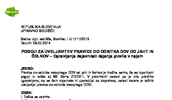 IZPOLNJEVANJE POGOJEV ZA DOBAVO BLAGA ZNOTRAJ UNIJE, OPROŠČENO PLAČILA DDV NA PODLAGI 46. ČLENA ZDDV-1 – Nepopolne CMR listine (I U 1704/2021-38) 27.11.2024 15.10.2025