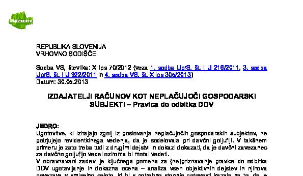 PRAVICA DO ODBITKA DDV – Dokazovanje obstoja goljufije na področju DDV s strani davčnega organa (X Ips 73/2021) 08.03.2023 13.06.2023