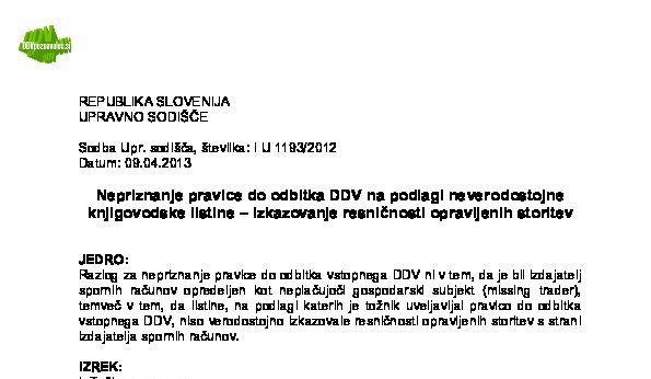 IZPOLNJEVANJE POGOJEV ZA DOBAVO BLAGA ZNOTRAJ UNIJE, OPROŠČENO PLAČILA DDV NA PODLAGI 46. ČLENA ZDDV-1 – Nepopolne CMR listine (I U 1704/2021-38) 27.11.2024 15.10.2025