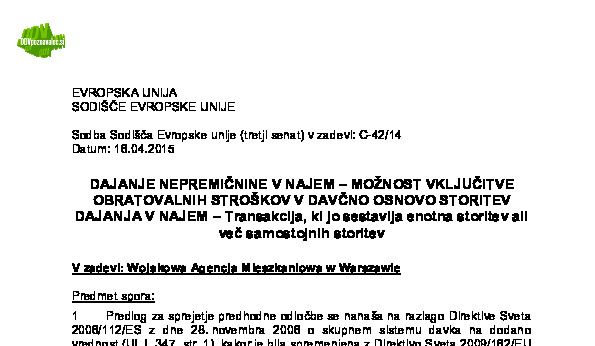 OPROSTITEV V ZVEZI Z DAJANJEM KREDITOV – OPROSTITEV V ZVEZI S FINANČNIMI TRANSAKCIJAMI – IZTERJAVA DOLGOV – Faktoring s prodajo terjatev – Faktoring z zastavno pravico (C-332/24) Kosmiro 23.10.2025 28.10.2025