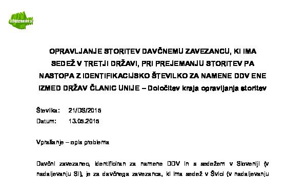 SLOVENSKI DAVČNI ZAVEZANEC OPRAVI STORITEV SEČNJE DREVES (GOZDA) NA OZEMLJU SLOVENIJE HRVAŠKEMU DAVČNEMU ZAVEZANCU – Določitev kraja opravljanja storitev skladno z določili ZDDV-1 25.11.2025 25.11.2025