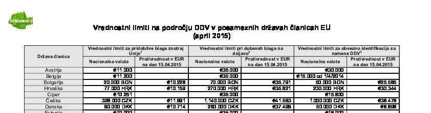 Vrednostni limiti za registracijo na področju DDV v posameznih državah članicah EU in državah izven Unije ter pragi za poročanje Intrastat (na dan 01.01.2025) 16.01.2025